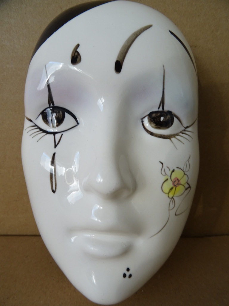 Vintage porseleinen masker 17cm vervaardigd rond 1970 of later. Het masker is in nog vrij goede staat, haast als nieuw en puntgaaf.