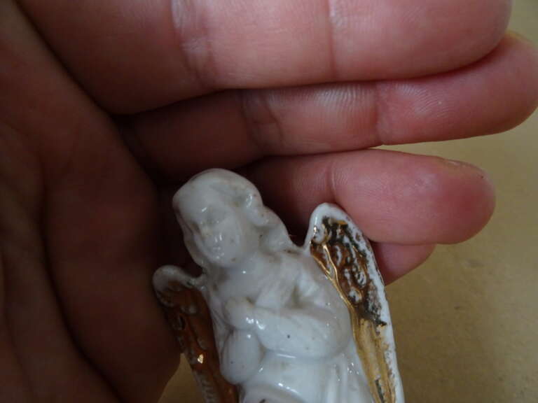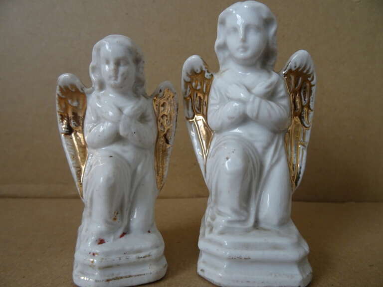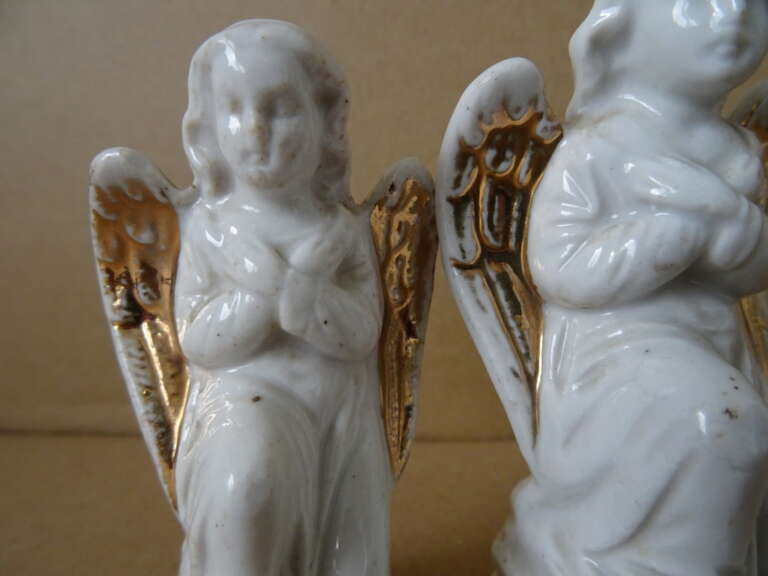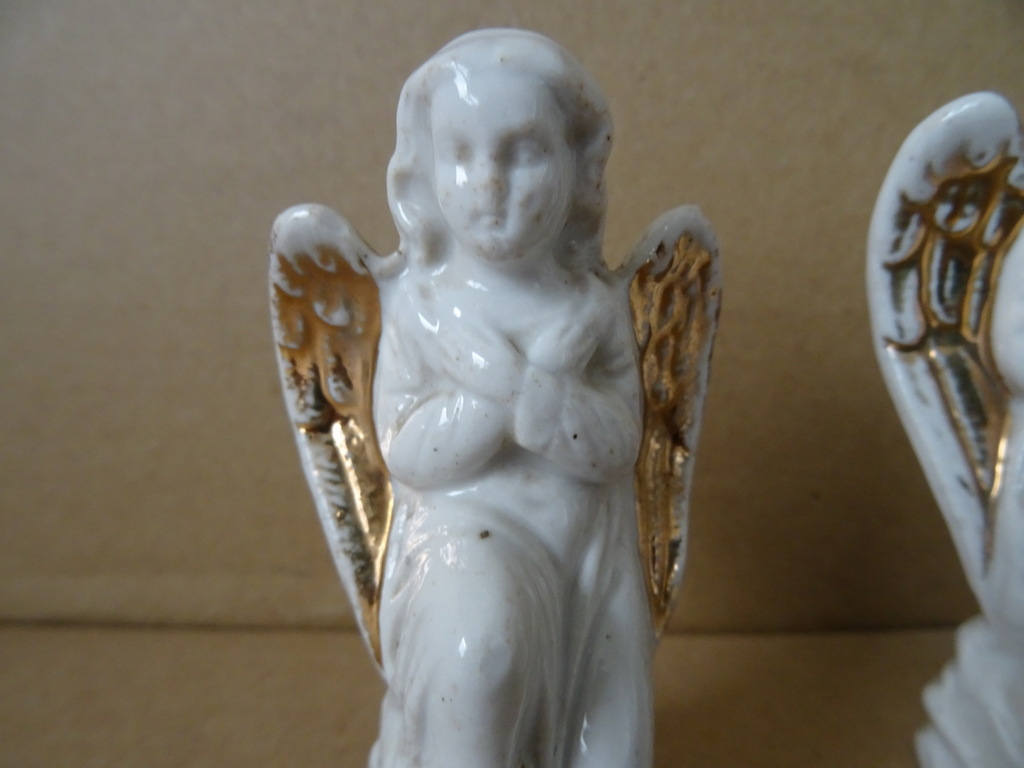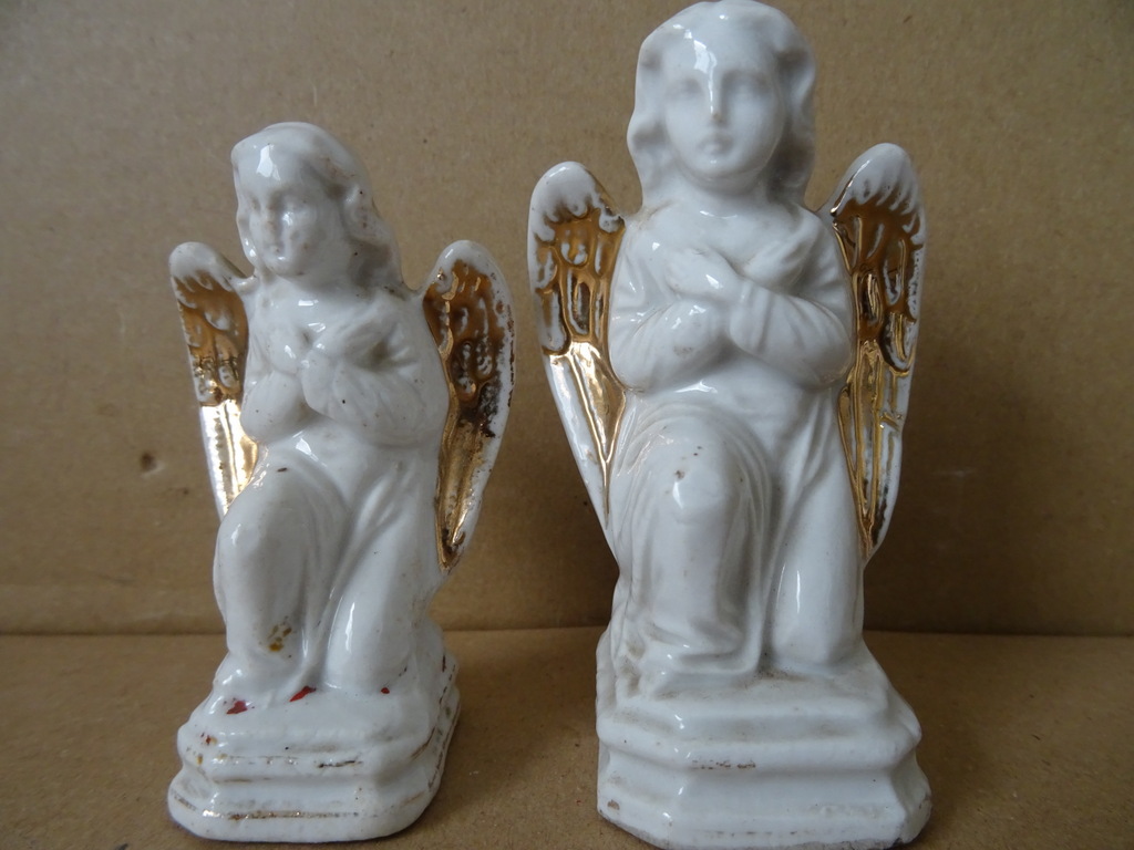 Antieke porseleinen engelen verguld 8cm en 9cm