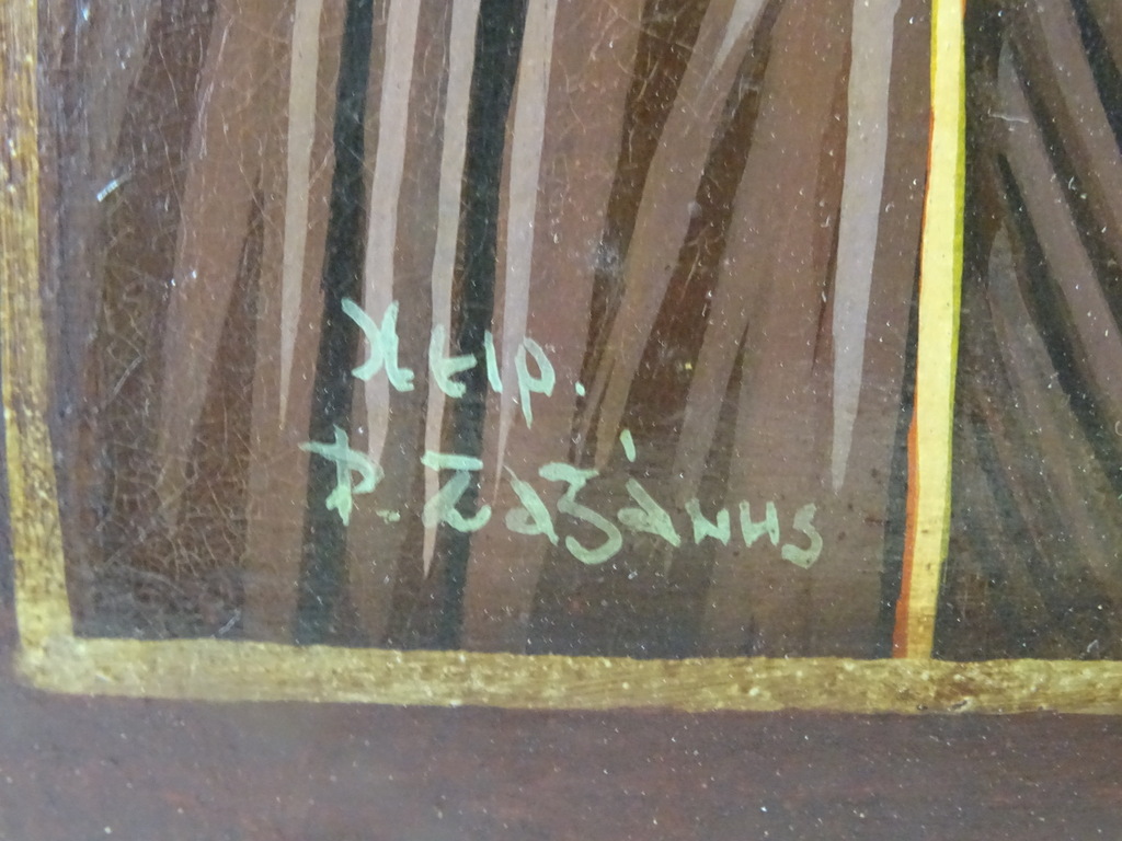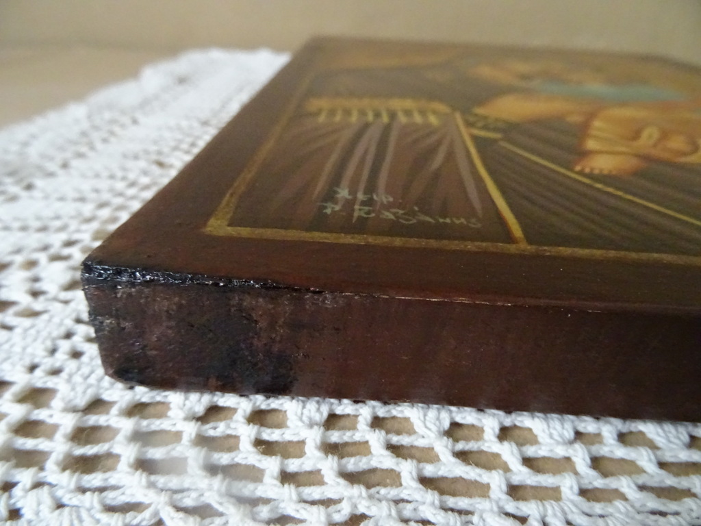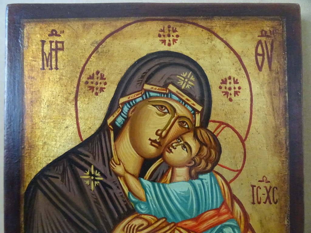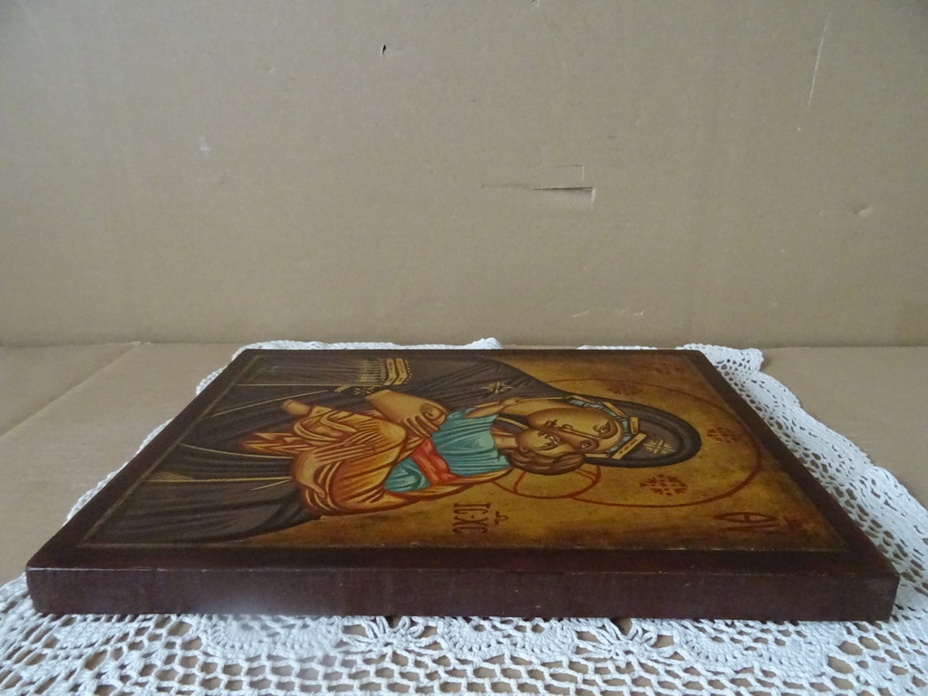 Verguld handgeschilderd Eleousa-icoon 21x28cmvervaardigd in 1978. Dit fraaie icoon, ook wel icoon de Maagd van de Tederheid genoemd, bestaat uit een geschilderde en vergulde afbeelding op een paneel van hout. Het is op traditionele wijze vervaardigd en in een schitterende gebruikte staat, zie foto’s. De (waarschijnlijk Griekse) maker heeft het stuk gesigneerd en gedateerd 1978.