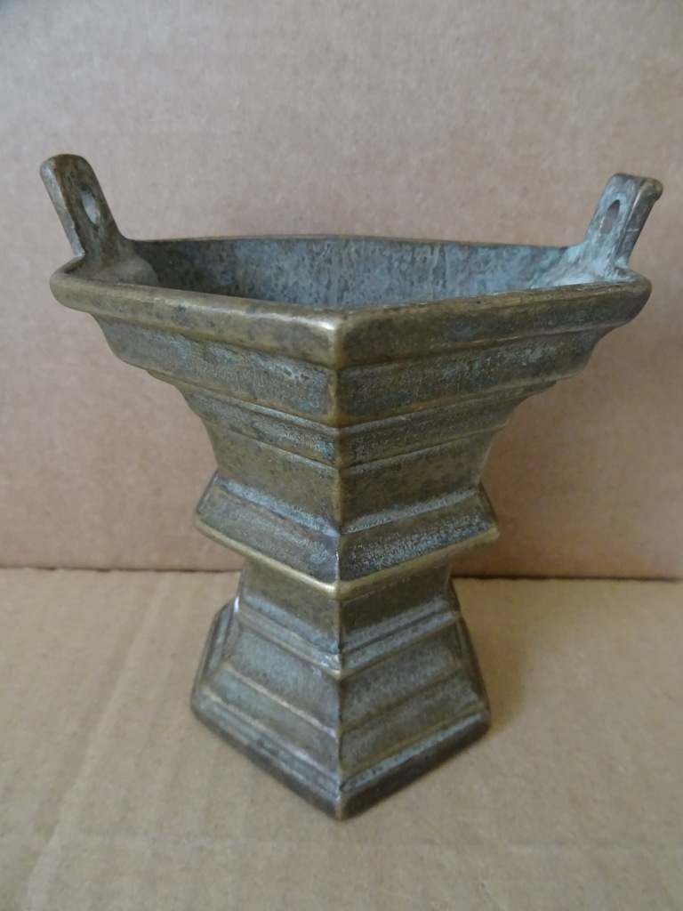 Antiek bronzen wijwatervat 18e eeuw of 19e eeuw in een schitterende gebruikte staat, het handvat ontbreekt slechts. Afkomstig uit de collectie van een pastoor op leeftijd. Hoogstwaarschijnlijk 18e eeuw.