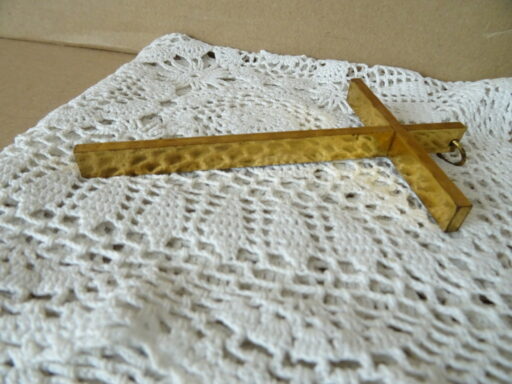 Antiek koperen kruisje kinderkruisje 12cm
