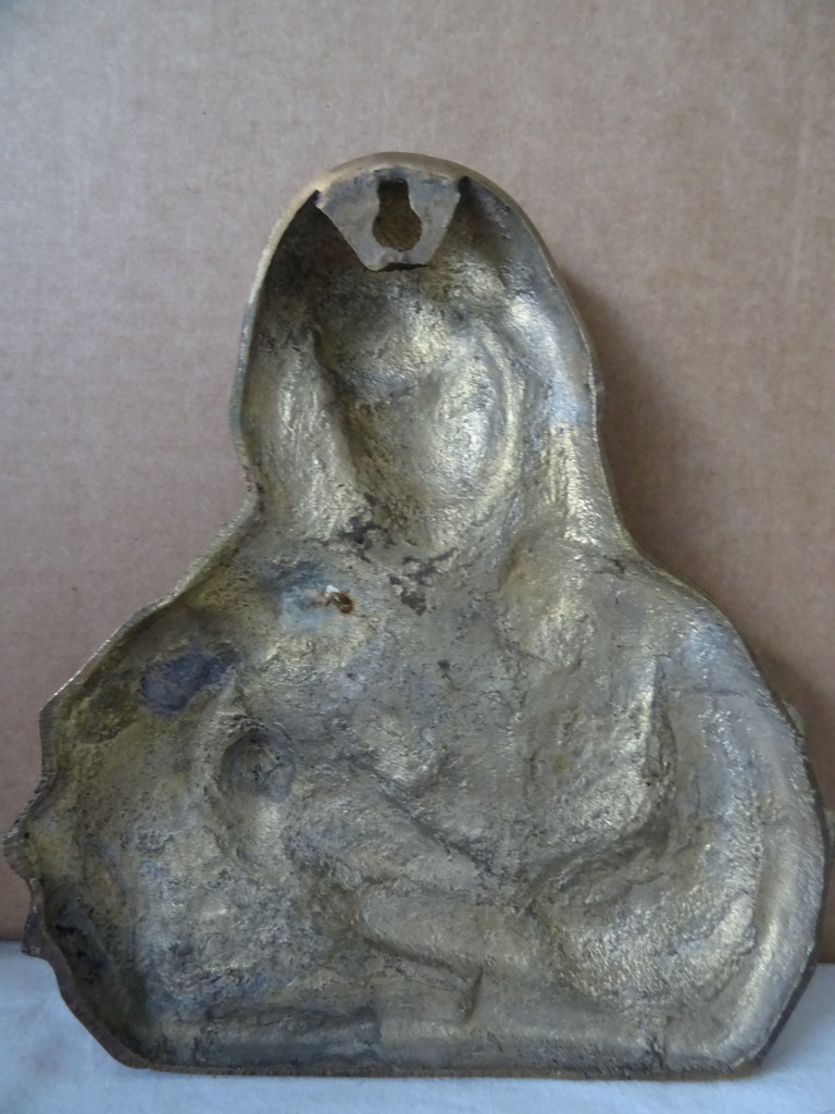 Antiek reliëf Madonna met kind vervaardigd rond 1900 of iets eerder. Een fraai reliëf van brons of verbronsd koper. Het zou ook verguld kunnen zijn. In ieder geval een prachtig stuk, afkomstig uit de collectie van een pastoor op leeftijd. In een prachtige gebruikte staat, zie foto’s.