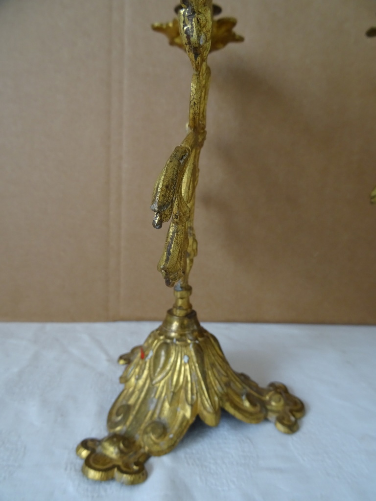 Antieke kandelaars van verguld brons