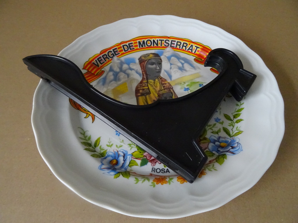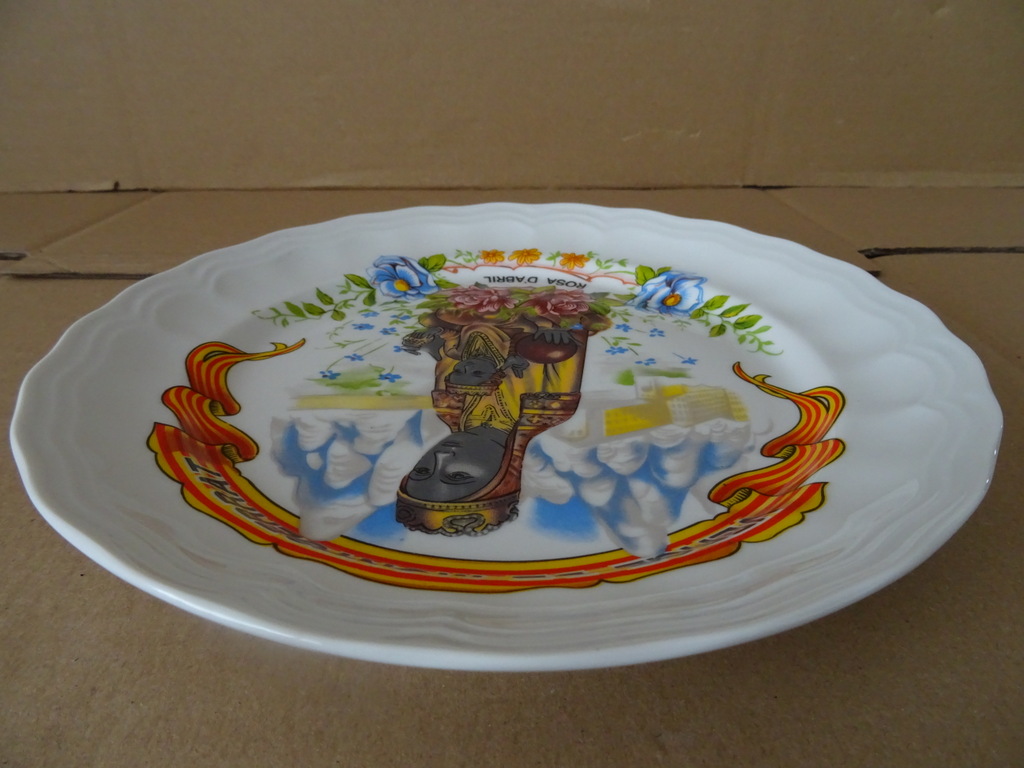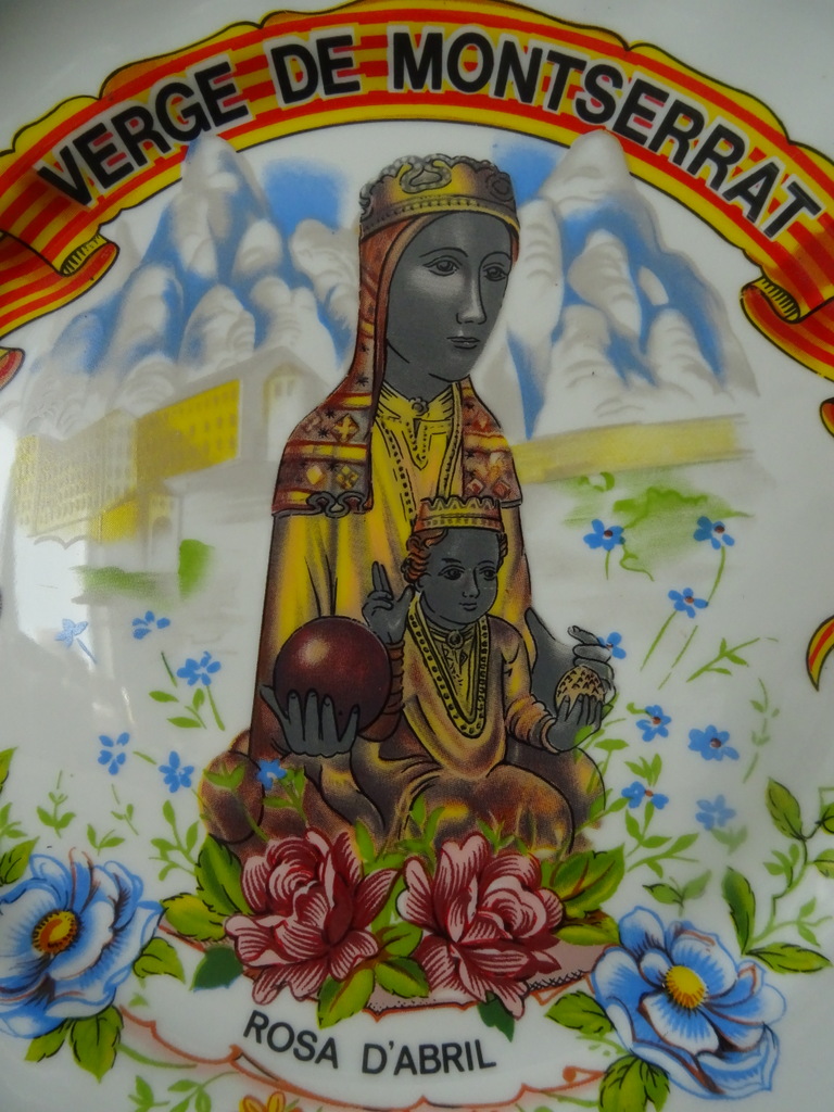 Bord Verge de Montserrat Zwarte Madonna van Montserrat vervaardigd in Spanje rond 1970 of later. In nog vrij goede staat, puntgaaf. Inclusief kunststof standaard. Het bord is aangeschaft in 1997 maar zou nog iets ouder kunnen zijn.