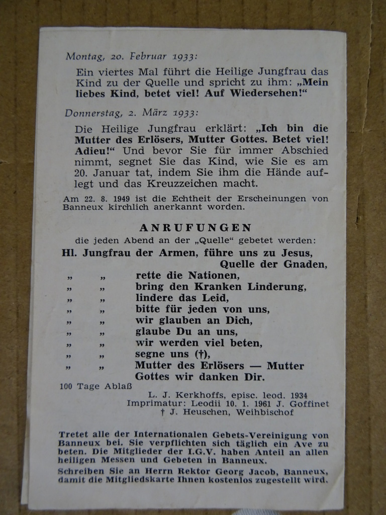 Collectie antieke religieuze brochures en boekje vervaardigd rond 1958 en eerder. Afmetingen boekje; 10.5 bij 14.7 cm. Alles is in goede gebruikte staat, zie foto’s.