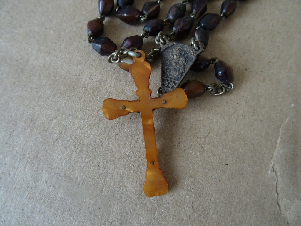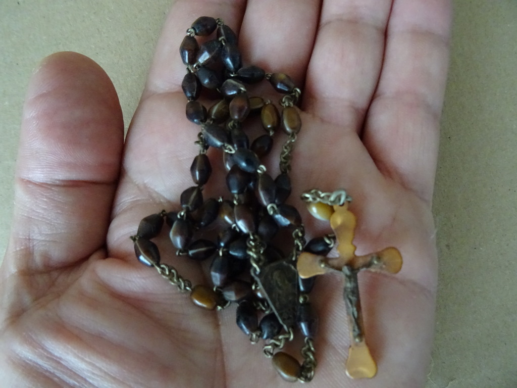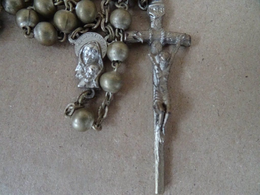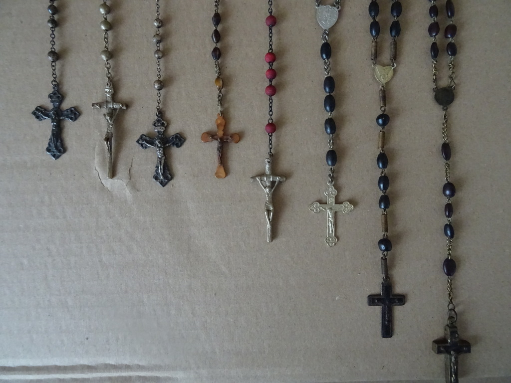 Collectie rozenkransen 19 euro per stuk vervaardigd in de periode 1960-1980. Een prachtige collectie van 8 rozenkransen. Ze zijn afkomstig uit een collectie die in een vitrinekast was uitgestald. Kleinste rozenkrans; circa 41 cm, grootste rozenkrans circa 55 cm. U kunt aan het eind van uw bestelling aangeven om welk nummer rozenkrans het gaat; 1 tot en met 8 zoals te zien is op de eerste foto. Afmetingen grootste rozenkrans; circa 2 bij 0,7 bij 55 cm.