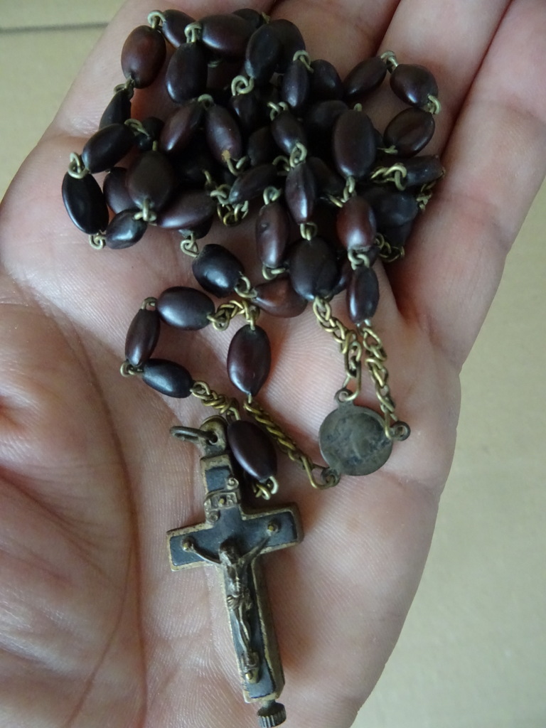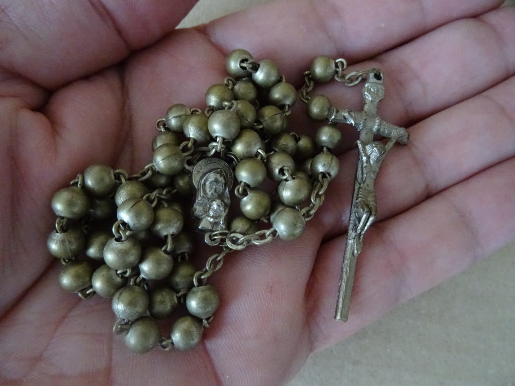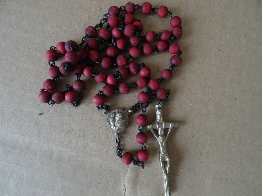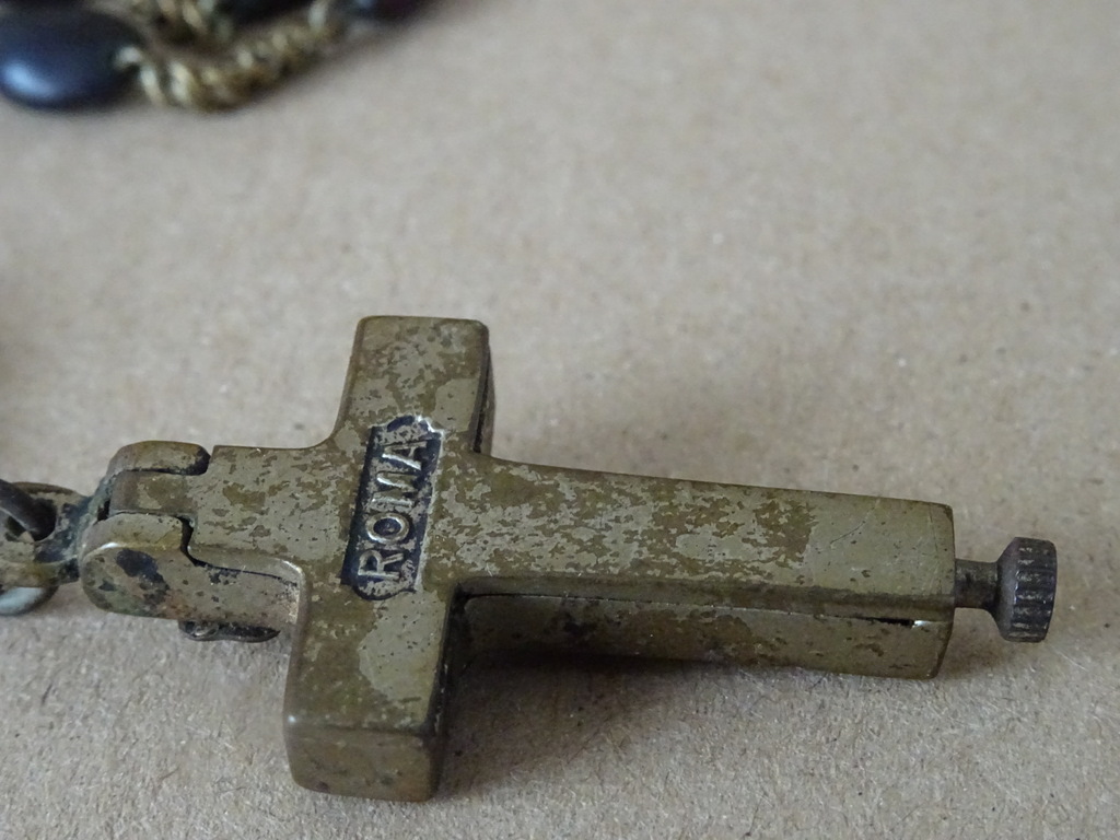 Collectie rozenkransen 19 euro per stuk vervaardigd in de periode 1960-1980. Een prachtige collectie van 8 rozenkransen. Ze zijn afkomstig uit een collectie die in een vitrinekast was uitgestald. Kleinste rozenkrans; circa 41 cm, grootste rozenkrans circa 55 cm. U kunt aan het eind van uw bestelling aangeven om welk nummer rozenkrans het gaat; 1 tot en met 8 zoals te zien is op de eerste foto. Afmetingen grootste rozenkrans; circa 2 bij 0,7 bij 55 cm.
