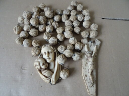 Grote vintage rozenkrans 160cm vervaardigd rond 1960 of later. Een mooie rozenkrans van kunsthars in nog vrij goede staat, puntgaaf.