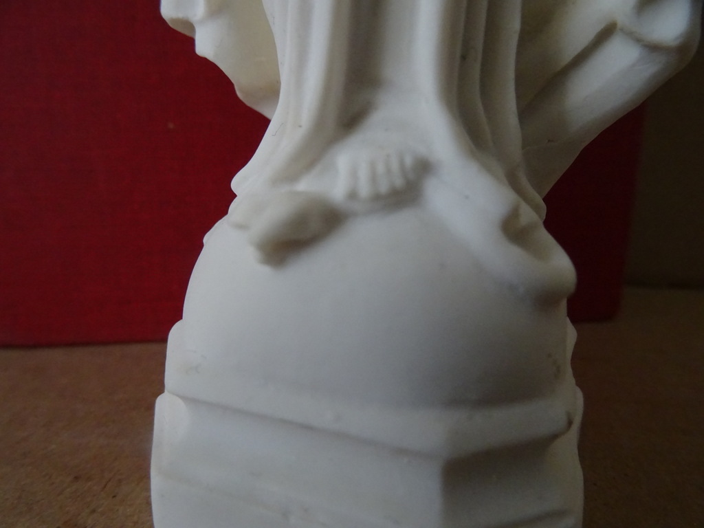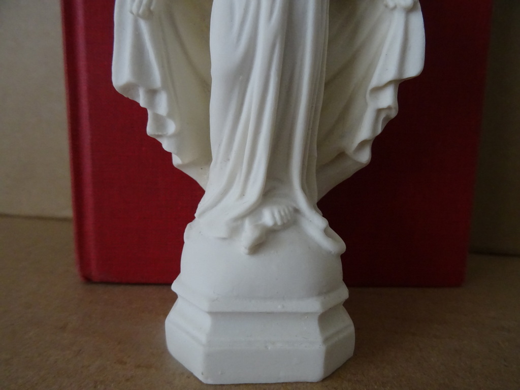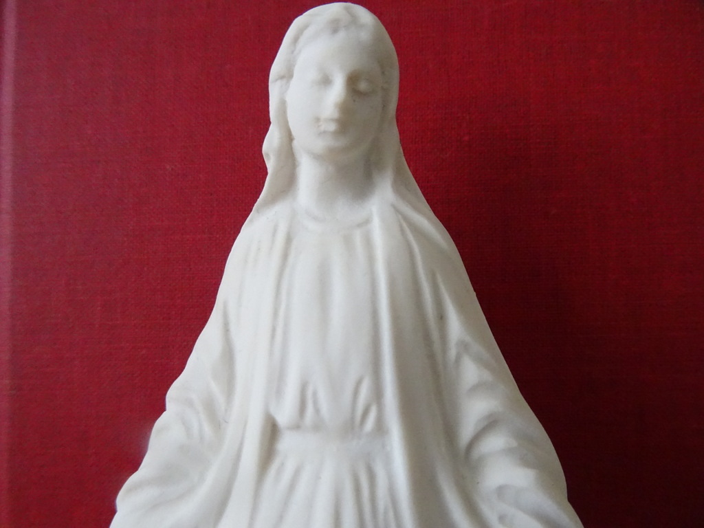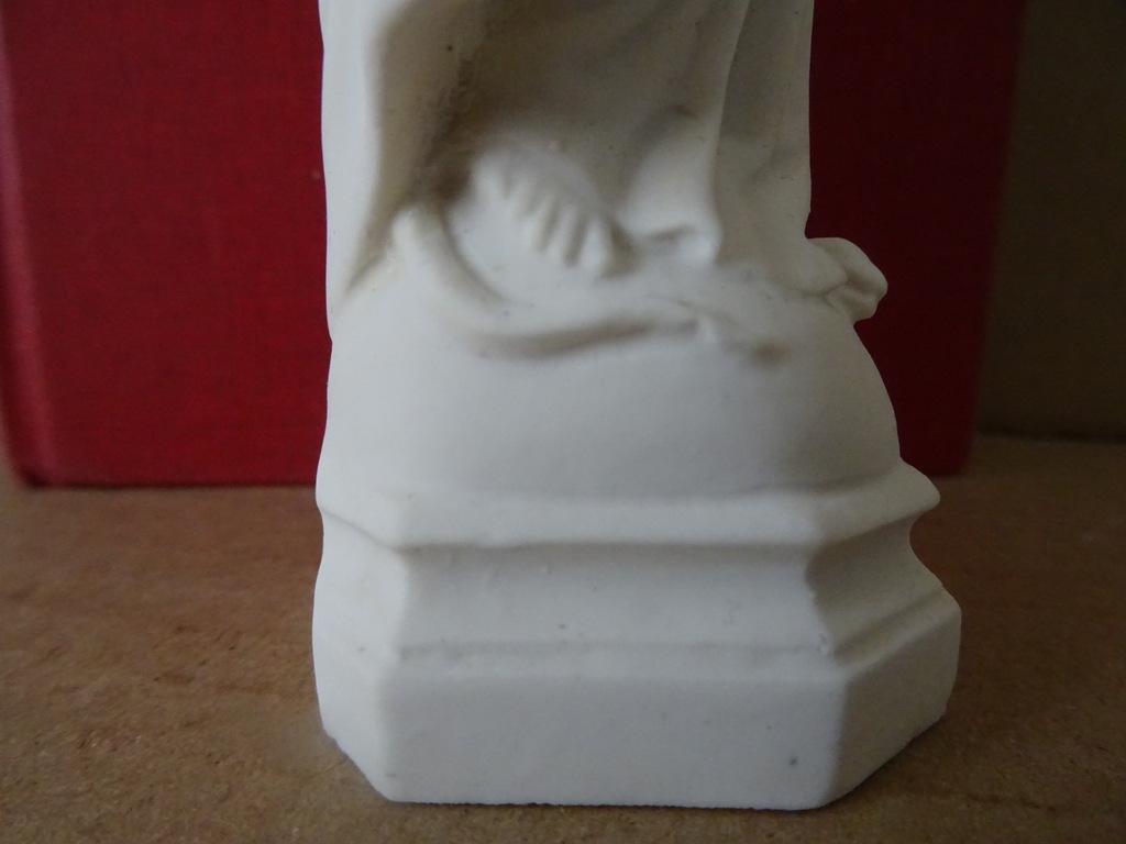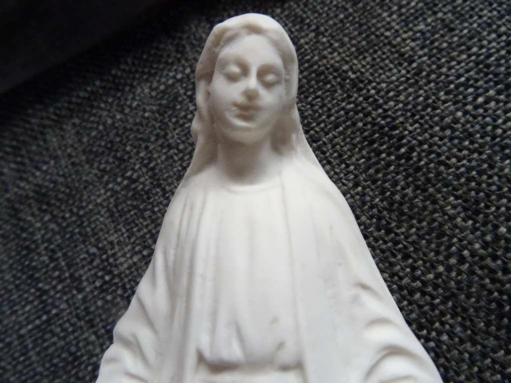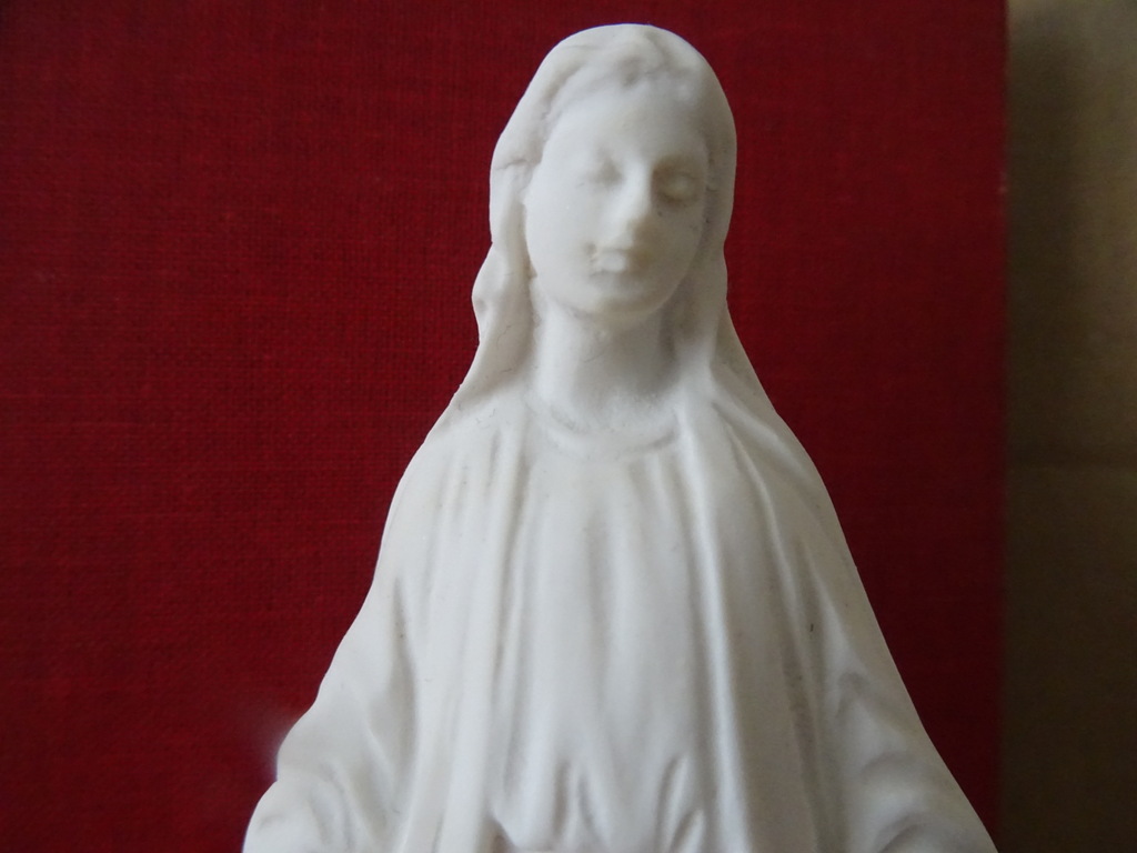 Italiaans Mariabeeldje Maria vertrapt slang 15cm marmer of marmergruis vervaardigd rond 1970 of later. Het beeldje toont Maria die de slang (het kwade) vertrapt. Het beeldje is in nog vrij goede, natuurlijk puntgaaf aangezien het marmer of marmergruis is. Het is afkomstig uit een collectie religieuze objecten die al die tijd in een vitrinekast was uitgestald. Het is in 2000 aangeschaft in Pomposa, Italië maar het zal iets ouder zijn.
