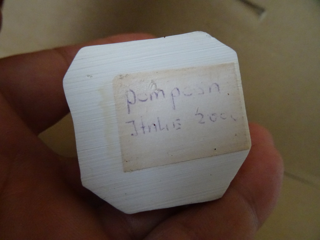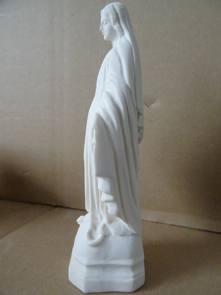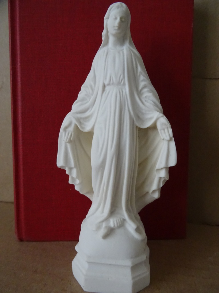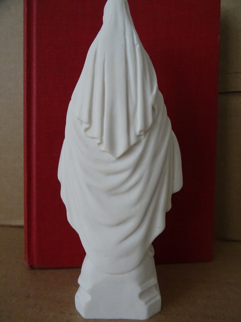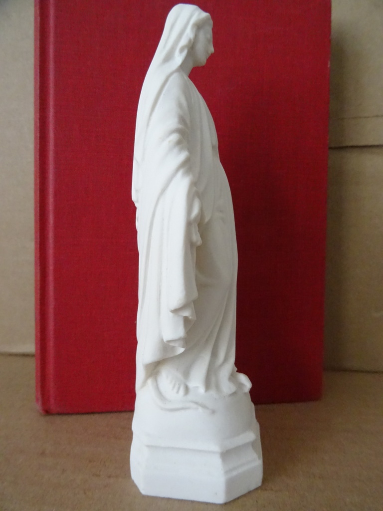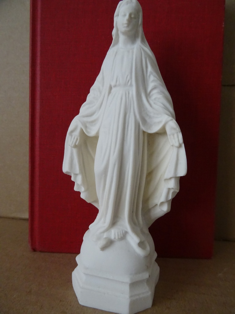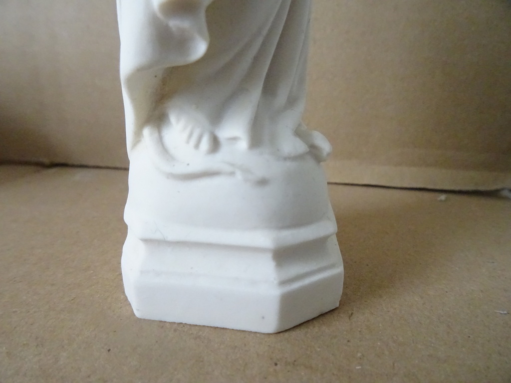 Italiaans Mariabeeldje Maria vertrapt slang 15cm marmer of marmergruis vervaardigd rond 1970 of later. Het beeldje toont Maria die de slang (het kwade) vertrapt. Het beeldje is in nog vrij goede, natuurlijk puntgaaf aangezien het marmer of marmergruis is. Het is afkomstig uit een collectie religieuze objecten die al die tijd in een vitrinekast was uitgestald. Het is in 2000 aangeschaft in Pomposa, Italië maar het zal iets ouder zijn.