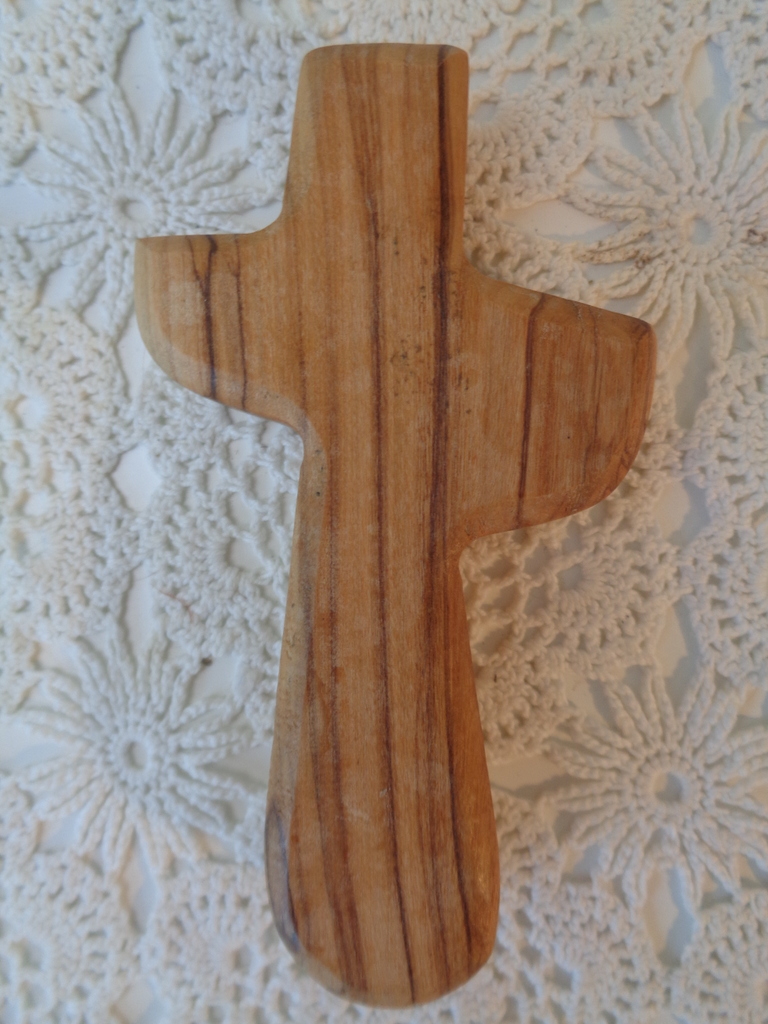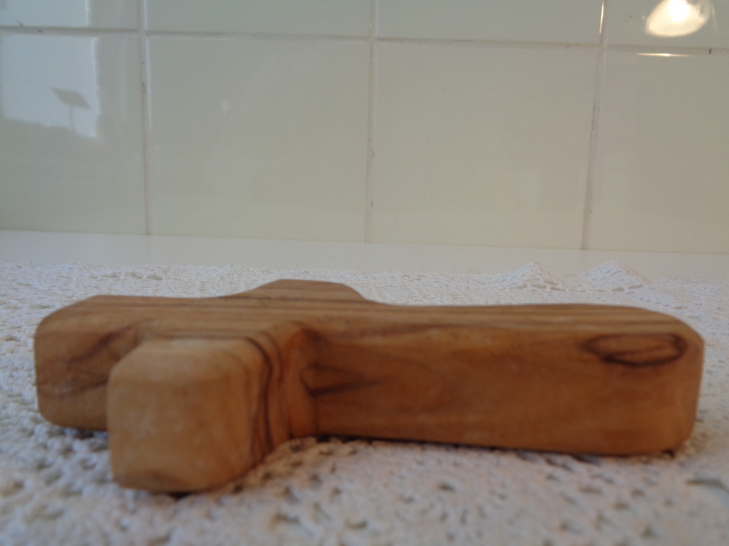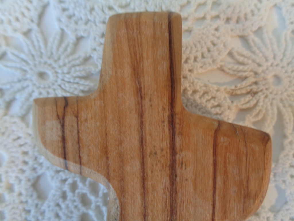 Kruis, amulet gemaakt van eikenhout. Het kruis weegt haast niets en het ligt perfect in de hand. Hierdoor is het ideaal om bijvoorbeeld mee te nemen op reis. Een amulet wordt gebruikt om onheil af te wenden.