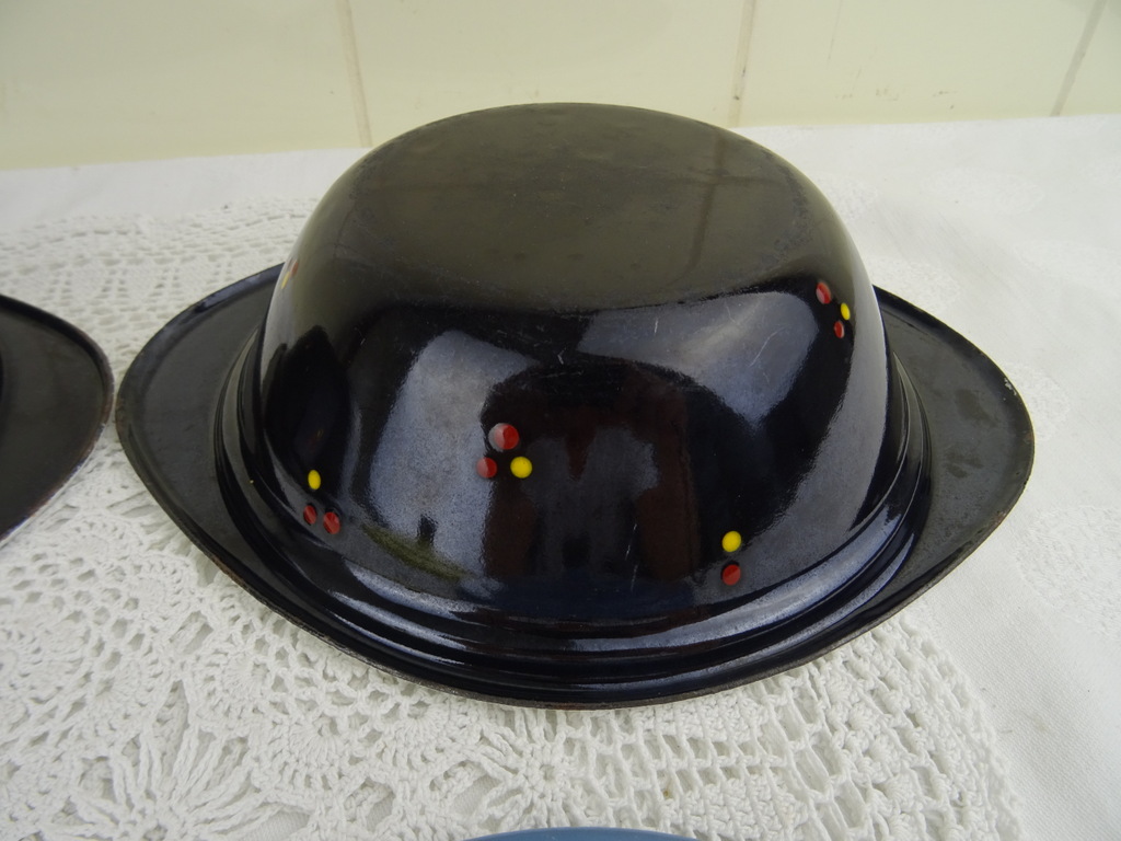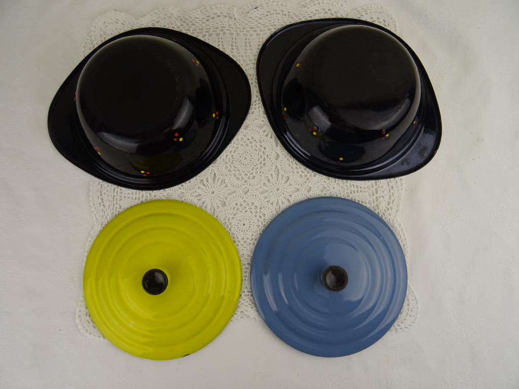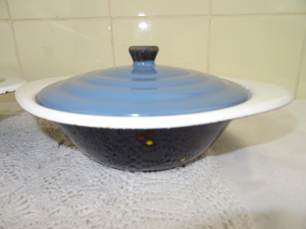 Set antieke emaillen schalen met deksel