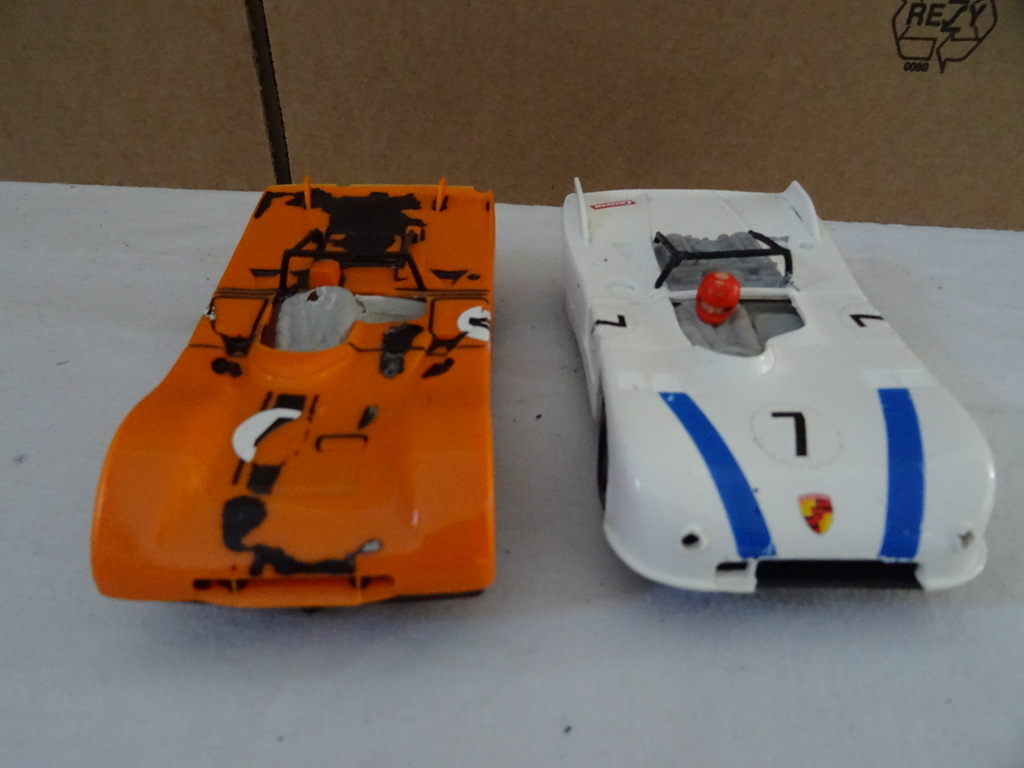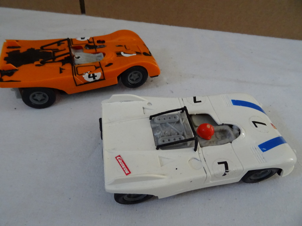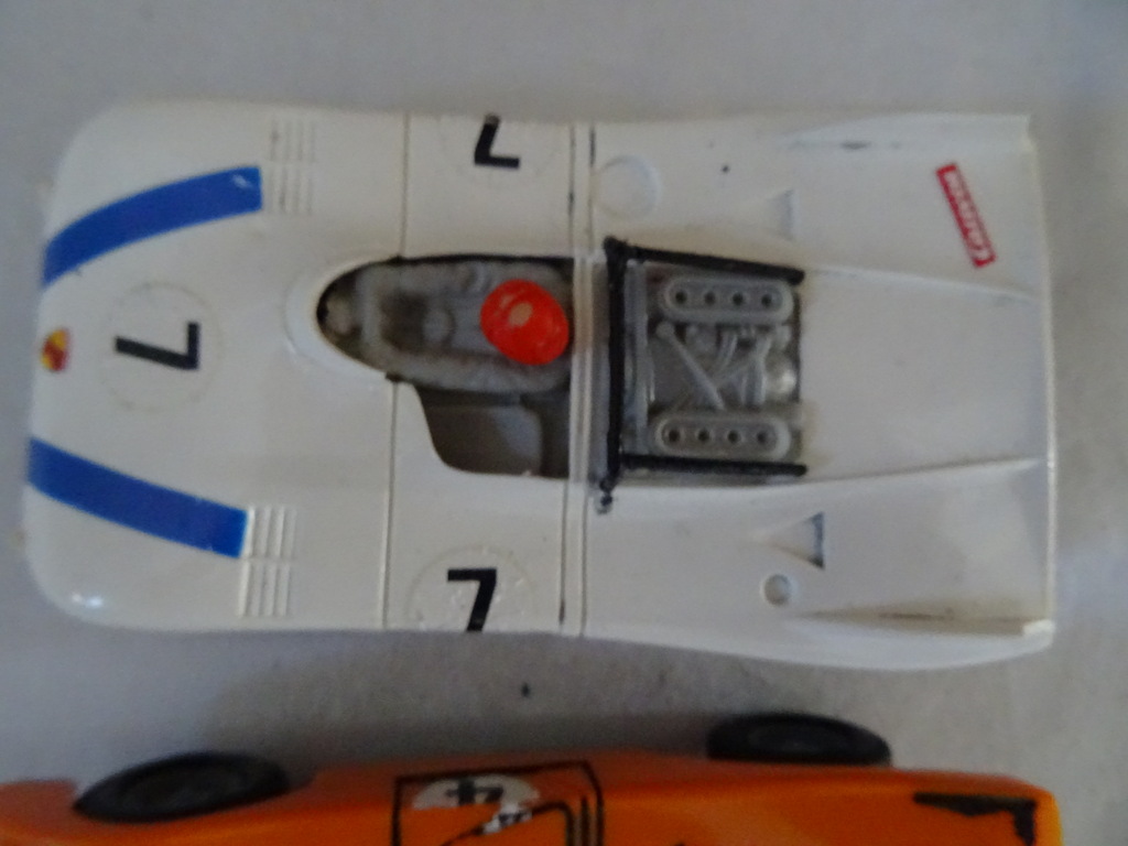 Vintage raceauto’s Carrera rond 1965. In een prachtige gebruikte staat, een bestuurder ontbreekt, zie foto’s. De auto’s zijn nagekeken en ze werken in ieder geval nog. Ik hoopte dat ze pasten op de record 64 racebaan maar dit bleek niet zo te zijn. Niettemin 2 prachtige raceauto’s voor iemand, u vindt ze alleen bij ons. Afmetingen per stuk; circa 6,5 bij 12 bij 3,5 cm.
