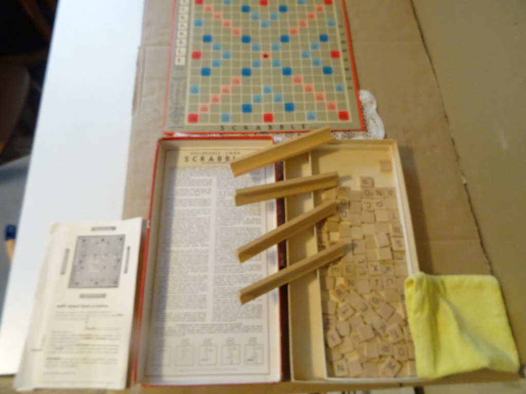 Vintage Scrabble spel vervaardigd rond 1970 of later. In een schitterende gebruikte staat en compleet met alle 102 steentjes. De doos is slechts geplakt met plakband aan alle kanten, zie foto’s.